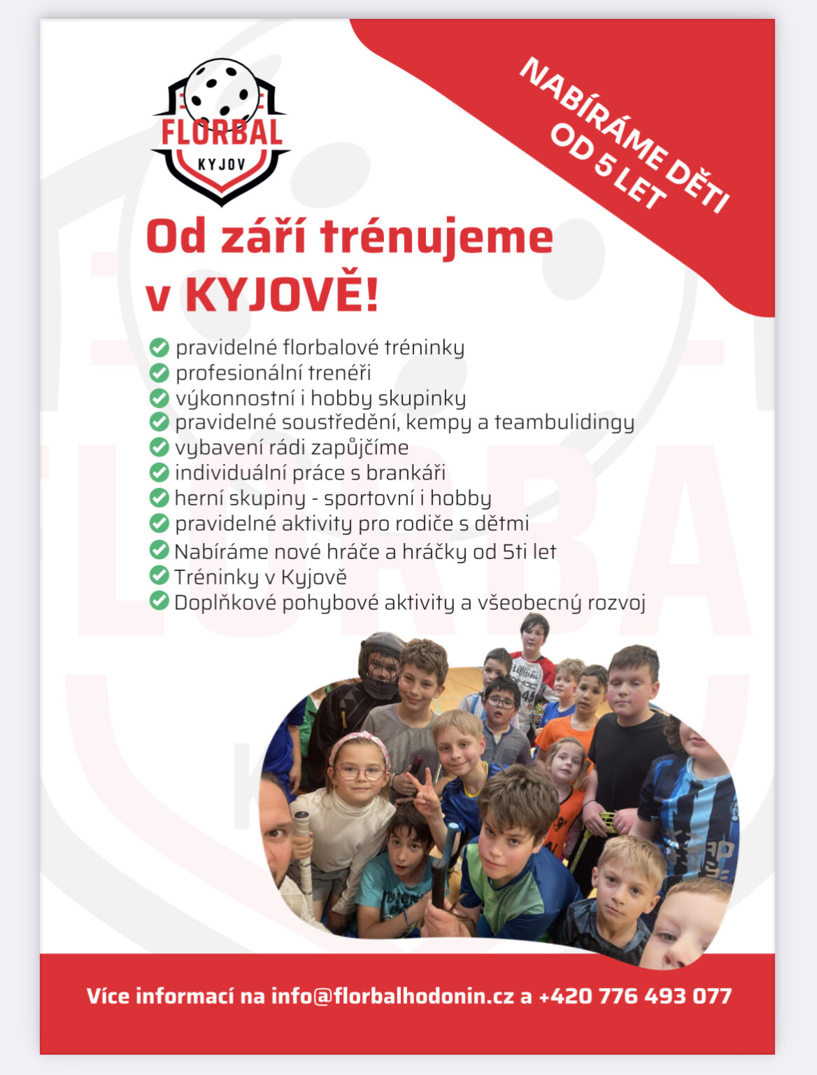 Začínáme s florbalem pro malé děti od 5ti let! Vhodné pro kluky i holky. Dvakrát týdně trénink, golmany naučíme. Výstroj zapůjčíme! Více informací na našich